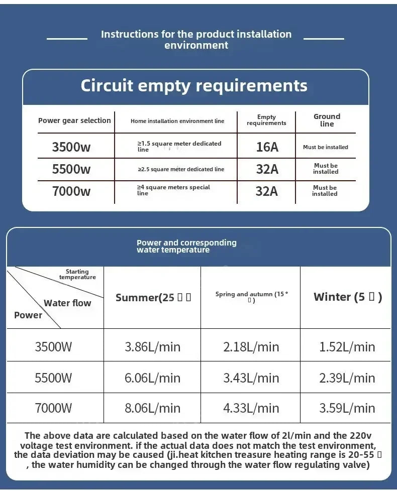 Voltage: 220V with adjustable power range 3000W–5500W for rapid heating