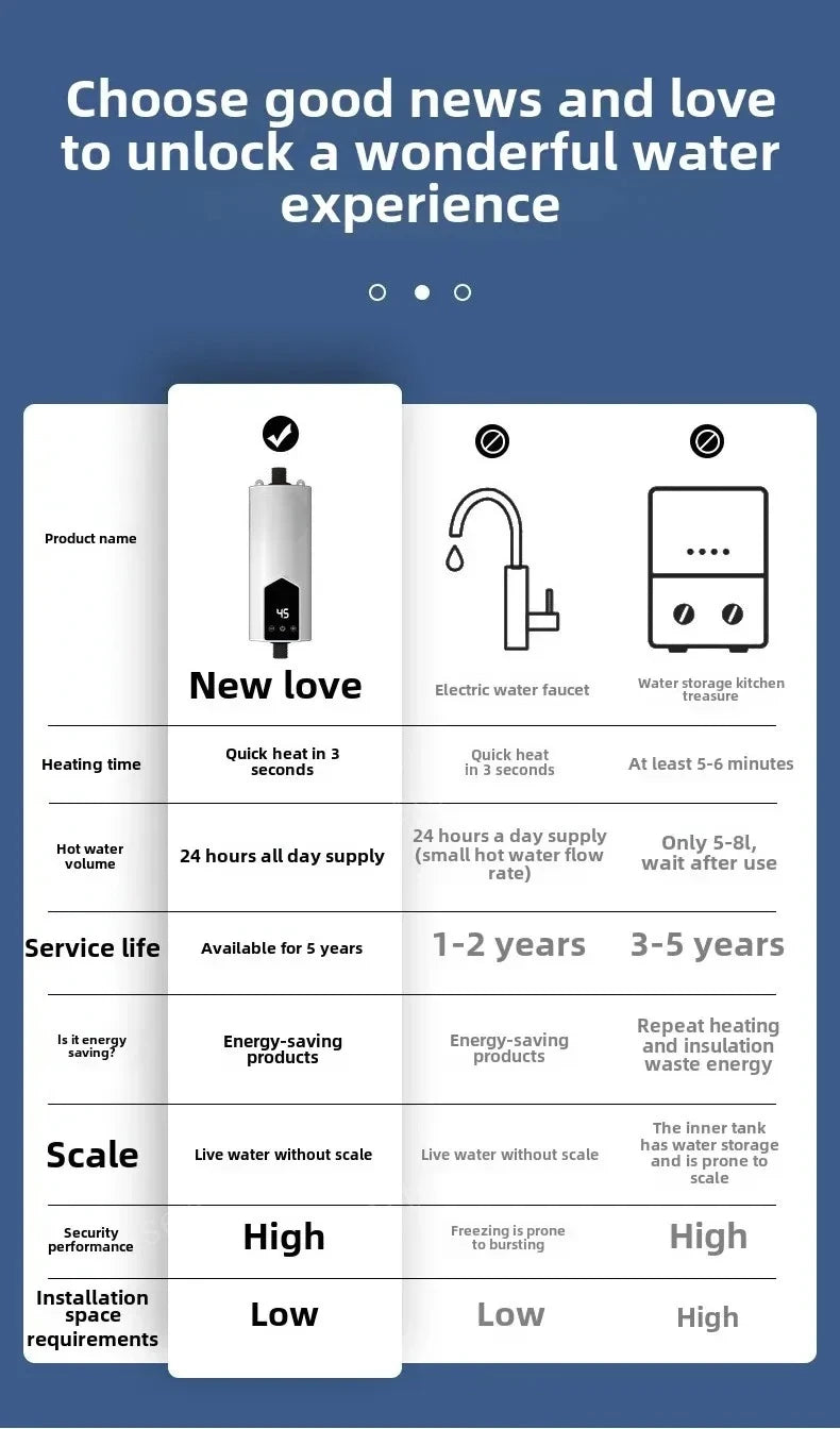 Ideal for showers, handwashing, dishwashing, and general household hot water needs